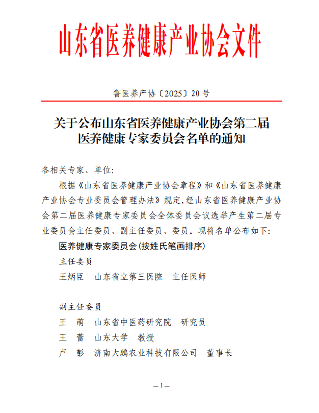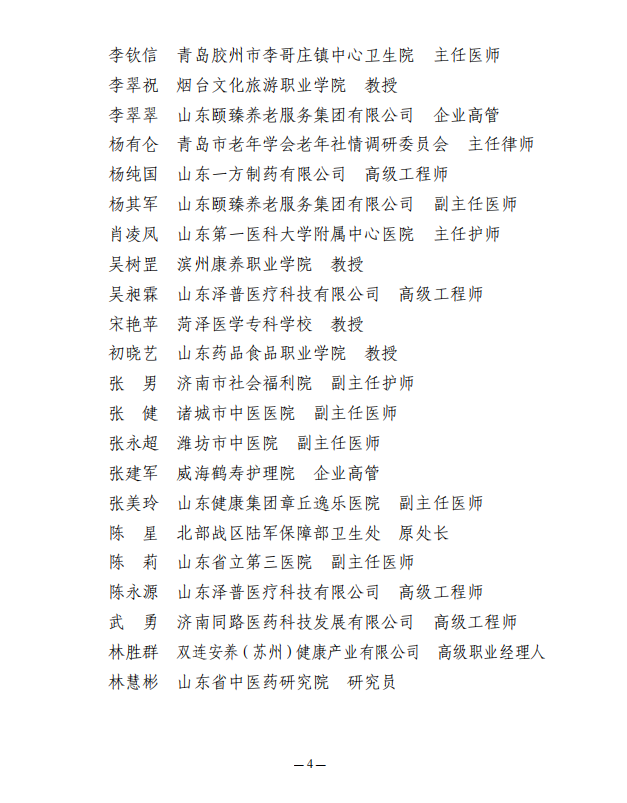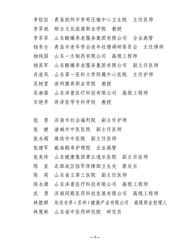关于公布山东省医养健康产业协会第二届医养健康专家委员会名单的通知