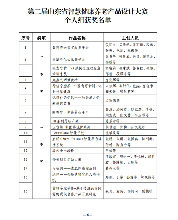 关于第二届山东省智慧健康养老产品设计大赛获奖作品的公告