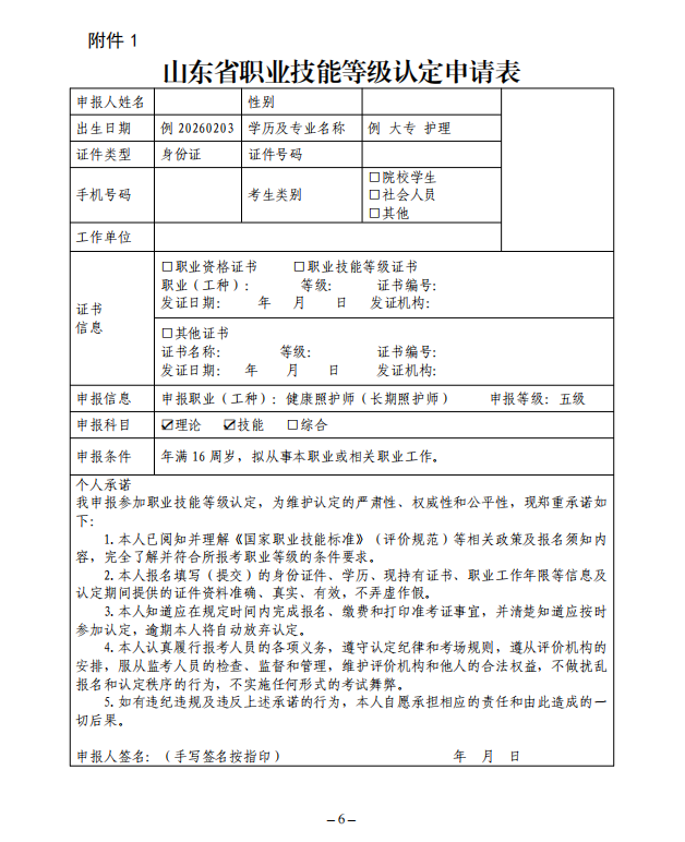 附件1:山东省职业技能等级认定申请表.doc