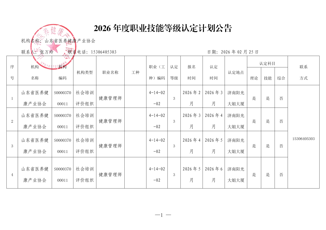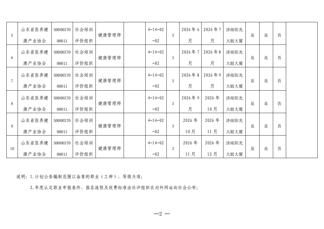 山东省医养健康产业协会2026年年度健康管理师认定计划公告