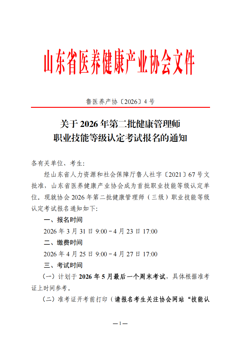 关于2026年第二批健康管理师职业技能等级认定考试报名的通知